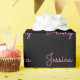 Any Name | Cool Editable Pink Script on Black Wrapping Paper