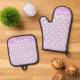 Any Name Cute Floral Daisy Pattern Oven Mitt & Pot Holder Set. Features pretty mauve and white daisy pattern. A fresh, happy look with cute daisies to brighten your day. Add your choice of name for a truly personalized touch.