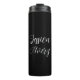 Any Name | Elegant Editable White Script on Black Thermal Tumbler