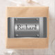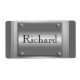 Add any name or initials to customize these silver metal look labels with a 3d look. Brushed metal surface chrome with four screws on the corners of the framed metallic steel plate give that 3d look that shines and stands out. The perfect and unique professional looking label for business use as well as personal use.