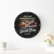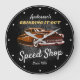 Any Name Speed Shop Slogan Vintage Car on Black Large Clock