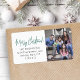 Add a stylish finishing touch to holiday card envelopes with modern custom photo return address labels. The picture and all text on this template are simple to personalize with any wording, such as Merry Christmas, Happy Holidays, Seasons Greetings, or Happy New Year. As an option, change script the typography to your name, and use the rest for the address only. The festive green, white and black design features modern handwritten script calligraphy, classic minimalist sans-serif typography and one photo of your choice. These unique labels make an elegant addition to Christmas cards and holiday party invitations.