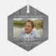 Any Text 1 Photo Memorial Gray Faux Wood Hexagon Glass Ornament