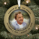 Any Text 2 Photo Memorial Black and Gold Faux Foil Metal Ornament