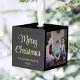 Any Text 3 Photo Simple Modern Minimal Black Gold Cube Ornament