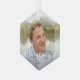 Honor a departed loved one for the holidays with a custom photo hexagon-shaped glass Christmas ornament. Picture and all text on this template are simple to personalize. "In loving memory of" can be changed to "forever in our hearts," "an angel in heaven" or other wording. The modern minimalist black and white overlay design features simple handwritten script typography and one picture of your choice. This unique sympathy keepsake makes a thoughtful funeral remembrance gift idea and adds a stylish touch to Xmas home decorations. It's an elegant way to pay tribute to a family member or friend who has passed away.