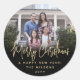 Add a stylish finishing touch to Christmas gifts, holiday cards and party favors with modern custom photo round stickers / envelope seals. The picture and all text on this template are simple to personalize with any wording, such as Merry Christmas, Happy Holidays, Seasons Greetings, or Happy New Year. As an option, change the script typography to your name, and use the rest for your return address or special message. The black and gold design features modern handwritten script calligraphy, classic minimalist sans-serif typography and one photo of your choice. Please note that gold is printed color, not metallic foil. These unique stickers can also be elegant gift labels, favor tags, or envelope seals for holiday cards or party invitations. Merry Christmas and Happy New Year!