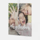 Celebrate the simple joys of the holidays with a script typography photo overlay square glass ornament. The picture and all text on this template are easy to personalize. Customize with any wording, such as Merry Christmas, Happy Holidays, My First Xmas, Best Friends, kids & family names, etc. The black and white design features trendy modern brushed script calligraphy, simple minimalist typography names & year, and two photos of your choice. This unique keepsake adds a stylish touch to Xmas home decorations. Merry Christmas!