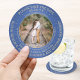 Any Text Wedding Save the Date Photo Blue and Gold Round Paper Coaster