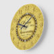 Great price for a very nice product. Arrived a day early - unheard of these days. The outside gold area has a little more orange tone to it than shown in the picture. Great packing so product can't get damaged. I used the same packing to forward the clock to my brother and sister-on-law for the 50th wedding anniversary. Printing was just as expected - lovely!