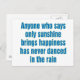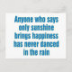 Rainy days may depress some people. For others, it brings new opportunities to dance! Reads "Anyone who says only sunshine brings happiness has never danced in the rain."