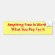 Anything Free Is Worth What You Pay For It Bumper Sticker