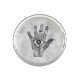 Interconnected BLACK LINE ART 1 HAND delicate LOTUS HAMSA HENNA Spiritual Metaphysical Buddhist Symbol - on a Shiny Silver glitter BACKGROUND JEWELRY WITH INTENTION (r)