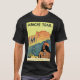 My 11 yo wore adult XL (5’7” 165#). The 8yo is small framed. She wore adult small and tied it in the back. Grandma wore adult large with long sleeve shirt underneath. Tall girl adult medium. Dark haired male adult large. Good quality dark Heather gray, Gildan brand shirt. -it was next up from basic choice and cost about $20 per shirt. Not too thick or thin. Washed and dried well, no major shrinkage. Not see-through. Can wear a bra under it fine. Screen print is just as shown and well done, front and back.