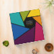 Professional binder for photographers, photo studios or other photography related business with stylized illustration of camera aperture on bright spectrum colors.