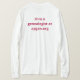 I love this shirt. I had written to the artist asking her if this picture was available on a shirt, and she wrote me back telling me where I could find the shirt. These shirts can be custom made to have a different saying. I loved this saying and went with it. The artist wrote me back later to tell me that she had seen my order go through. How's that for service? Pretty special. It's just as displayed. Perfect!