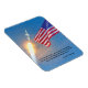The American flag heralds the flight of Apollo 11, the first Lunar landing mission, with astronauts Neil Armstrong, Michael Collins and Edwin Aldrin on July 16, 1969 from the Kennedy Space Center. Also included is a quote from President Kennedy's inspirational speech at Rice University “We choose to go to the moon in this decade and do the other things, not because they are easy, but because they are hard."