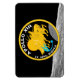 Apollo 13 was the seventh manned mission in the NASA Apollo space program and the third intended to land on the Moon. The craft was launched on April 11, 1970, at 13:13 CST from the Kennedy Space Center, Florida, but the lunar landing was aborted after an oxygen tank exploded two days later. The Apollo 13 emblem shows three horses that represent Apollo, the sun god of Greek mythology. The Latin phrase Ex Luna, Scientia means "From the Moon, Knowledge."