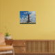 The material we chose was heavyweight paper. If you choose this it won't stand on its own so we purchased a plastic frame from walmart. It was a hit on our wedding. Everyone loved it. It looked more expensive than what we paid for. Loved it! Image was clear & sharp. Loved it!