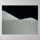 Wide-angle view of the Apollo 17 Taurus-Littrow lunar landing site. To the left in the background is the Lunar Module. To the right in the background is the Lunar Roving vehicle. An Apollo 17 crewmember is photographed between the two points.