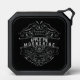 Cool portable bluetooth speaker for moonshine lovers features fictitious Appalachian Apple Pie moonshine label in white/light gray on black background