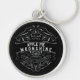 Stylish keychain for moonshine lovers features fictitious Appalachian Apple Pie moonshine label in white/light gray on black background.