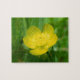 Buried in the tall green grass is a sunny yellow buttercup sparkling with fresh raindrops.