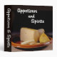 Keep your appetizer and beverage recipes organized with this convenient recipe album. The cover of this album has a contemporary photograph of a cheese plate. Text reads: "Appetizers and Spirits". The back of this binder has a glass of red wine. Binder spine reads: "Appetizers and Spirits".