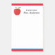 This 4x6 Post-it® Note pad features a graphic of a red apple and a light blue and red border. The top of the pad reads "A NOTE FROM" with customizable text for the teacher's name. This makes a great gift for a teacher.