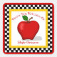 If you are always taking a dish filled with your favorite food to a friend or potluck dinner, make sure you get your dish back by marking it with one of these charming Apple & Checkerboard From The Kitchen of Square Stickers. This shiny apple is an original illustration created by Debi Payne Designs. Its vibrant red is features a shiny highlight as the light reflects from the side of the apple and it is accented with a brown steam and green leaf to indicate it ripe freshness. The apple is surrounded by a classic black & white checkerboard border accented with a golden yellow inner liner all on a deep red background. Customize your square stickers by adding your name or any text you choose. This will make a perfect gift for any teacher, cook, chef, doctor or nurse.