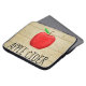 Cute apple painting against a wooden background. The text says “Apple Cider” in a fun rustic font.