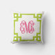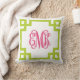 Apple Green and Pink Greek Key Script Monogram Throw Pillow