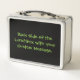 This is a standard metal lunchbox that appears to work just fine. We designed this box ourselves with an uploaded photo and custom text on the front and back. It looks absolutely beautiful except the front of the lunchbox is not centered like it shows in the photo. The print borders don't align with the inset flat part of the box where the preview photo online showed it perfectly centered in there. The back looks nice and centered though.