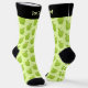 Green apple with leaf icon. Seamless pattern. Custom background color. Custom top stripe color. Custom text on each sock.