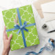 Apple green quatrefoil pattern wrapping paper. Customizable background color with white moroccan print. Cute gift wrap for elegant Birthday, Christmas and wedding party.