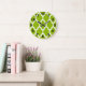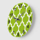 Apple Green White Moroccan Quatrefoil Pattern #4 Large Clock