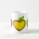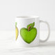 Sweet teacher's gift mug, with graphics of a red, a yellow and a green heart shaped apples. Customize to add your own text.