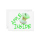 Apple Inside. Photo of a green apple core and the text - Apple Inside. An apple a day keeps the doctor in poverty. Prints and gifts for fun and good mood.