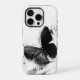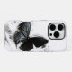A phone case featuring a design of a butterfly against a white background, with artistic brushstroke elements. The butterfly design is visually striking, combining elegance with a touch of artistic flair. The contrasting colors and textures can attract attention. Butterflies often symbolize transformation, beauty, and freedom. This design can evoke positive emotions and inspire a sense of renewal. The blend of realistic imagery with abstract strokes gives it a unique personality, allowing it to stand out from more conventional designs.
