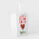 I own a lot of reusable grocery bags, but this one holds its box shape and simply stands up on its own even if there is nothing in it. Its stiffer than your regular reusable bag too, and the material is water resistant. I poured water on the exterior and it didn't penetrate inside to the other side. I'm buying a couple more. Wish I knew how durable these bags were or I would have purchased a few more with my initial order. I also like how it folds and buttons up when not in use, making it easy to put into a handbag or luggage. I haven't used this bag yet, as I purchased it for travel use, like when you're at the airport and need to small sturdy bag to place any airport purchases in, like food, souvenirs etc. I can tell you when you first see this bag, it looks very cheap, but after closer inspection of the material and the seams its a very sturdy reusable bag. I tested it out by putting some really heavy objects inside and I could not observe any stress to the bag at all. Another thing I like about it, is the fact the medium size that this is makes it easy to just carry it in your hand without the bottom of the bag scraping the ground, like most other bags do when you're short. That alone, deserves 5 stars. I just wish there were more colors to choose from! The PDX Airport Carpet printing looks just like the photo, and using this bag during travel might be a conversation piece when/if a native from Oregon happens to see it.