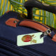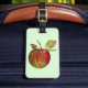 A color pencil drawing of a green and red apple adorns this customizable luggage tag!