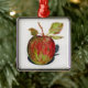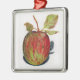 A color pencil drawing of a red and green apple at the end of apple picking season adorns this ornament!