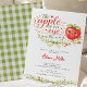 This fruit themed baby shower invitation blends rustic country charm with modern script typography, making it ideal for a farmers market baby shower, locally grown theme, or garden party event. The warm red apples and soft green accents create a fresh, timeless look your guests will love.