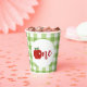The Apple of our Eye is turning one! Apple themed first birthday party cups.