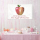 Apple themed baby shower featuring folk art watercolor inspired illustration of an apple with text "The Apple Of Our Eye."