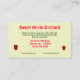 This business card presents a u-pick apple orchard that also sells cider, apple butter and gifts. The front features six beautiful red and gold apples. The back has all the important text as well as more apples. All text can be customized to fit your individual business needs.