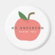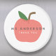 A simple, stylish, vibrant apple fruit graphic design badge in a fun, trendy, scandinavian minimalist style in shades or red pink and green which can be easily personalized with your teachers name by replacing "Ms Anderson" and a tagline replacing "Thank you" to make a truly unique thank you gift for your teacher!