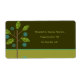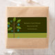 Apple tree fall wedding custom label, featuring a stylized apple tree with turquoise blue fruit. Turquoise blue, olive green.
