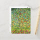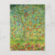 A fine art postcard with the painting by the Austrian artist Gustav Klimt (1862-1918), Apple Tree (Apfelbaum) c. 1912. A colorful depiction of a red apple tree in the orchard with wildflowers in the foreground.