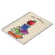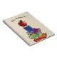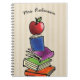 This personalized notebook for teachers features a red apple on top of a colorful stack of books and a name to customize with a neutral tan striped background. Designed by world renowned artist Tim Coffey.